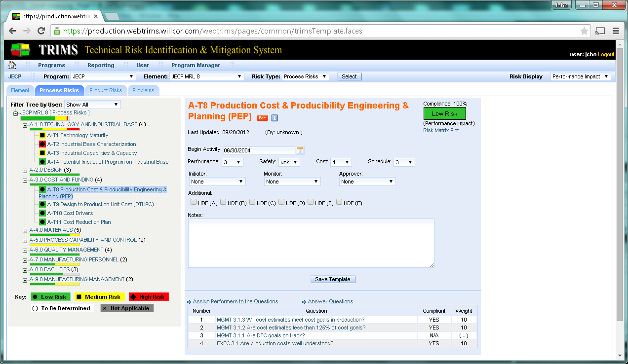 WebTRIMS is a tool designed to help you identify, quantify, and track risks in your program, and then reduce or mitigate these risks to acceptable levels. It works throughout all phases of a program's transition from initial concept to full production and life cycle support. It is a Web version of standalone TRIMS application.